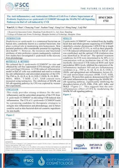 图3 表皮葡萄球菌CCSM0287功效研究获2025年IFSCC国际化妆品科学大会展示