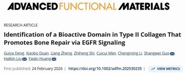 近日,国际权威期刊《Advanced Functional Materials》(中科院1区Top期刊,影响因子19)刊发了东阿阿胶与北京化工大学黄雅钦教授团队一项研究成果,从骨Ⅱ型胶原蛋白中发现了一条具有双重生物活性的功能多肽。