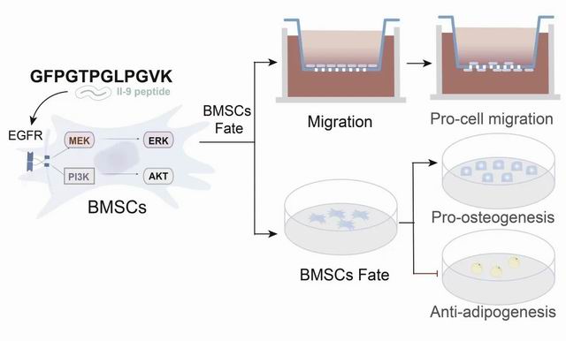 该研究首次证实,这条骨源活性多肽(氨基酸序列:GFPGTPGLPGVK)可同时“促进成骨分化”并“抑制脂肪生成”,其作用机制在于通过激活EGFR信号通路定向调控细胞分化命运。这一发现为解决中老年群体普遍存在的骨质疏松与“骨脂失衡”问题提供了新的科学视角。