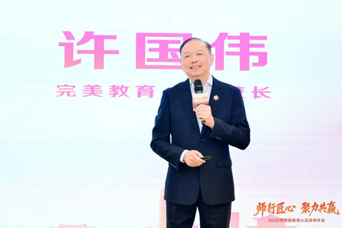 完美公司副董事长、完美教育荣誉校长许国伟为讲师年会作总结致辞。他寄语讲师们:想要成为最好的老师,先要成为最好的学生,融会贯通内化于心,学以致用,才能外化于行、授人以渔。认证讲师身份既是荣誉也是责任,要做好完美代言人、文化播种者、伙伴同行者。展望2026,许校长勉励认证讲师们深耕专业、加强教研、坚守初心,践行"知行合一,成己达人"校训。教育为本,薪火相传,方成百年完美。