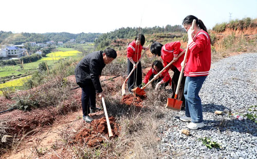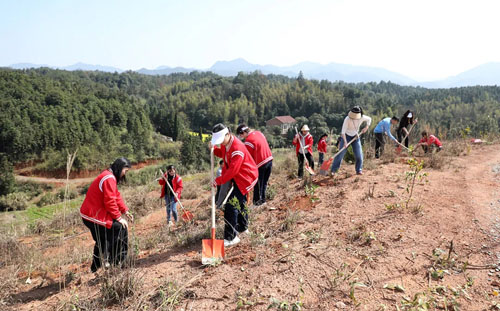 绿之韵集团常务副总裁胡均安现场指导大家栽种技巧,他表示,植树造林是功在当代、利在千秋的事业。绿之韵集团已连续多年坚持开展义务植树活动,这已成为企业党建工作的传统项目和生态文明的生动实践。今年由第三党支部牵头组织,不仅展现了党员昂扬向上的精神风貌,更强化了大家植绿、爱绿、护绿的责任意识。希望通过我们的行动,带动更多人关注生态、保护环境,共同守护好家乡的绿水青山。