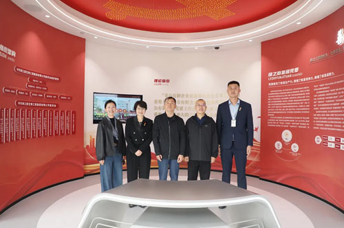 调研组一行循着企业发展脉络,先后参观了绿之韵中心数智化科技展厅、党建教育阵地、人大代表联络站及政协委员工作室等核心区域,进行了全方位、深层次的实地考察。在数智化科技展厅内,“水之道” 设计理念将东方 “上善若水” 的哲学智慧与前沿数字技术深度融合,通过沉浸式交互系统,全面展现企业发展历程、全链条产品体系、行业领先的科研成果,以及在公益助学、乡村振兴等领域的扎实实践,立体呈现出企业的创新活力、产业实力与社会担当。