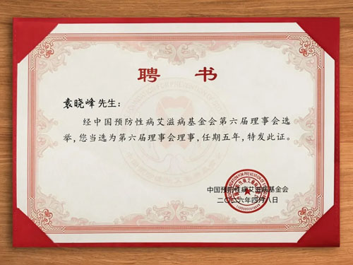 2026年4月8日,中国预防性病艾滋病基金会第六届理事会换届选举大会暨第一次会议在北京召开。中国预防性病艾滋病基金会名誉理事长、国家卫生健康委原疾病预防控制局副巡视员孙新华,中国中国预防性病艾滋病基金会第六届理事会理事长、国家疾病预防控制局传染病防控司原司长雷正龙、中国预防性病艾滋病基金会第六届理事会副理事长、中国疾病预防控制中心性病艾滋病预防控制中心副主任刘玉芬,中国预防性病艾滋病基金会第六届理事会副理事长、复旦大学附属华山医院感染科主任张文宏等基金会工作人员、行业专家参加会议。经投票选举,陕西三八妇乐科技集团董事长袁晓峰当选为基金会第六届理事会理事。