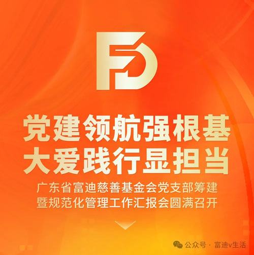 2026年4月15日,由富迪健康科技有限公司承办的广东省富迪慈善基金会党支部筹建暨规范化管理工作汇报会在广州隆重召开。会议紧扣党建引领慈善高质量发展的时代要求,立足公益事业提质增效核心,既是对富迪党建赋能公益、践行社会责任的关爱,更是各级领导心系公益事业、助力企业高质量发展的有力彰显。广东省民政厅监管处展登龙处长、广东省社会组织总会臧运强副秘书长、张卫秘书长及甘棠村陈家颖书记等各级领导亲临指导,为基金会党支部筹建工作精准把脉、赋能护航,深刻体现了相关部门对公益类企业党建工作的高度重视,为企业践行社会责任、推动慈善事业高质量发展提供有力指引。