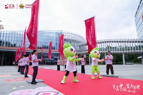 开班首日,可爱的葱仔带来活力满满的欢迎舞蹈,一条鲜艳红毯静静铺展,象征着专属学员的荣耀征程正式开启。学员们步履坚定、笑容自信,归属感与使命感在此刻凝聚。随后,大家走进完美华南生产基地,近距离观摩从研发创新到精益生产、从严苛品控到贴心服务的全链路卓越实力,进一步坚定了同心同行、携手奋进的信心。