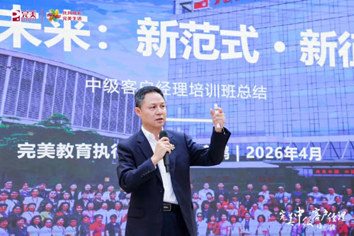 在培训总结环节,完美教育执行副校长黄家鹏对学员们满怀期许、寄予厚望。他强调,在当下充满机遇与挑战的市场环境中,学员们需积极拥抱完美事业的新范式,主动突破传统思维定式,实现思维模式的转型升级。同时,要敏锐把握数字化时代的发展趋势,充分利用各类数字化工具为业务发展注入强劲动力,实现业务的良性循环与发展。