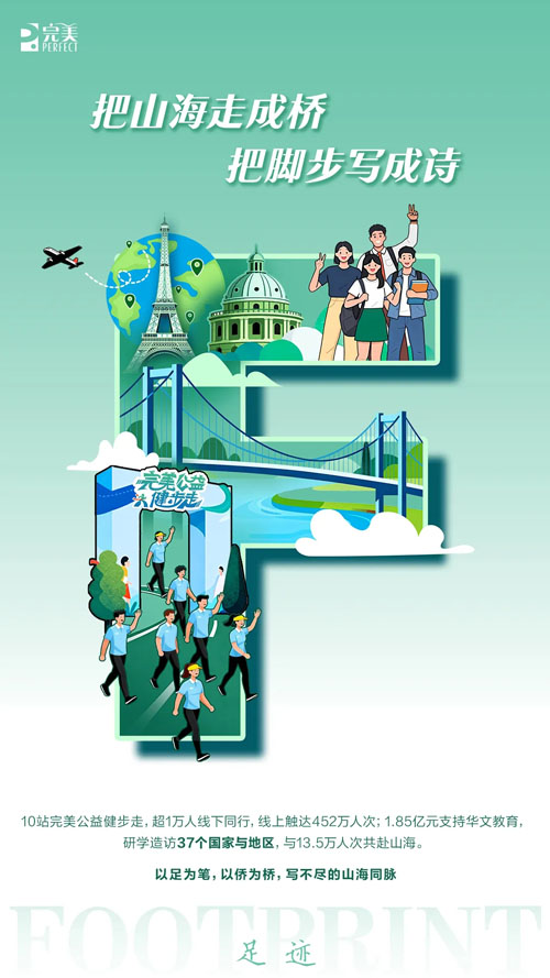 从2011年至今,完美累计捐资1.85亿元支持海内外华文教育,为海外华人青少年搭建起连接中华文脉的桥梁;海外研学足迹遍布37个国家与地区,13.5万人次共同参与,完美也在这一过程中,深化了侨商品牌与全球华人的情感连接。