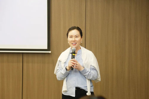 在互动交流环节,展业赋能部总监柯冬燕为学员们深刻剖析水光仪市场的战略机会、破局节点与发力焦点,系统梳理并回望了美容展业新模式的重大意义,助力全员深化认知,为后续展业蓄势赋能,为深耕市场精准发力。