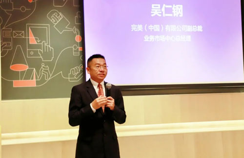完美公司副总裁吴仁钢为本次活动发表致辞。他指出,面对消费者对科技护肤需求的持续升级,无创水光仪正是公司为创业伙伴开拓美容市场的有力“利器”。他勉励大家珍惜培训机会,深学产品知识,共研推广策略,期待大家能满载而归,推动完美事业再上新台阶。