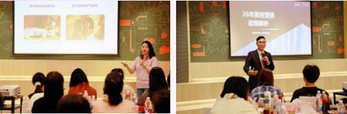 美容日化产品部经理肖小池随后介绍了2026年度美容市场的利好举措,从政策支持到资源加码,全方位展示公司深耕美容赛道的决心与信心。营销策略部经理陈展林则对美容营销活动进行宣贯,将水光仪与具体市场打法紧密结合,为创业伙伴提供了清晰的展业路径。