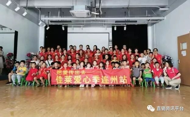 佳莱一直以仁爱为企业文化,关爱留守儿童和老人一直是佳莱所倡导的。2019年8月4日,"传播传统文化·把爱传出去"佳莱爱心季(第二站)走进广东清远连州,来自佳莱崇德慈善义工团的30多位爱心志愿者冒着37℃高温从广州市区出发,驱车4小时,专程奔赴连州留守儿童同心服务中心,开展爱心联谊活动。