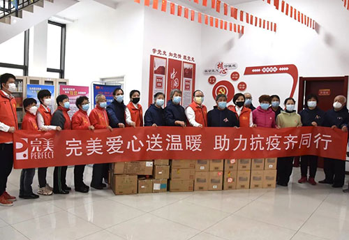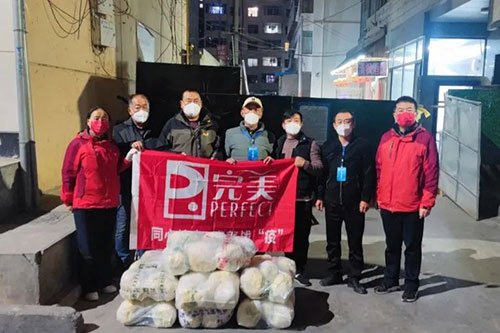 此次慰问的对象是枫叶正红志愿队。志愿队的队长孔令智老先生,既是天津市最美抗疫人物又是天津市道德模范。在街道领导和孔老先生的带领下,大家参观了社区,也了解到枫叶正红队的历程,能够在这样特殊的日子里,为他们带去完美公司的问候和温暖,也为我们的工作增添了一份美好。