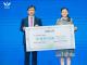 中脉伍华秘书长和尚善毛爱珍理事长向周金怡校长授旗