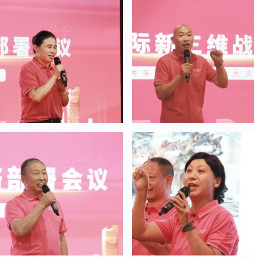 会议分享环节,金天国际新老家人们透过平台展现风采,一个个生动的案例分享,一句句朴实无华的真情流露,一次次将现场的气氛推向高潮,无不展示了三维市场人的激昂澎湃、踌躇满志的良好精神风貌!