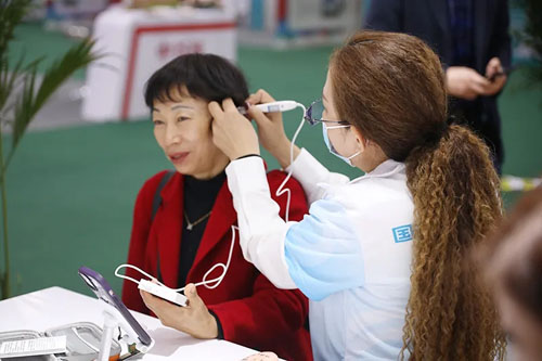 位于场馆入口处的新时优品展区人头攒动,前来体验健康管理服务的人排起长队,其中不乏从全国各地专程来到健博会现场打卡、考察的新老朋友。